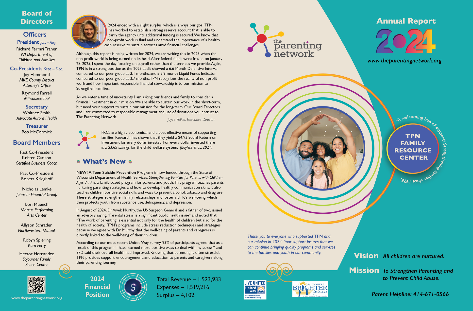 "Thank you to all of the wonderful friends, donors, and supporters of the work The Parenting Network has done over the years. You have helped us support parents and their families so they can raise successful children which in turn makes our community stronger and healthier.